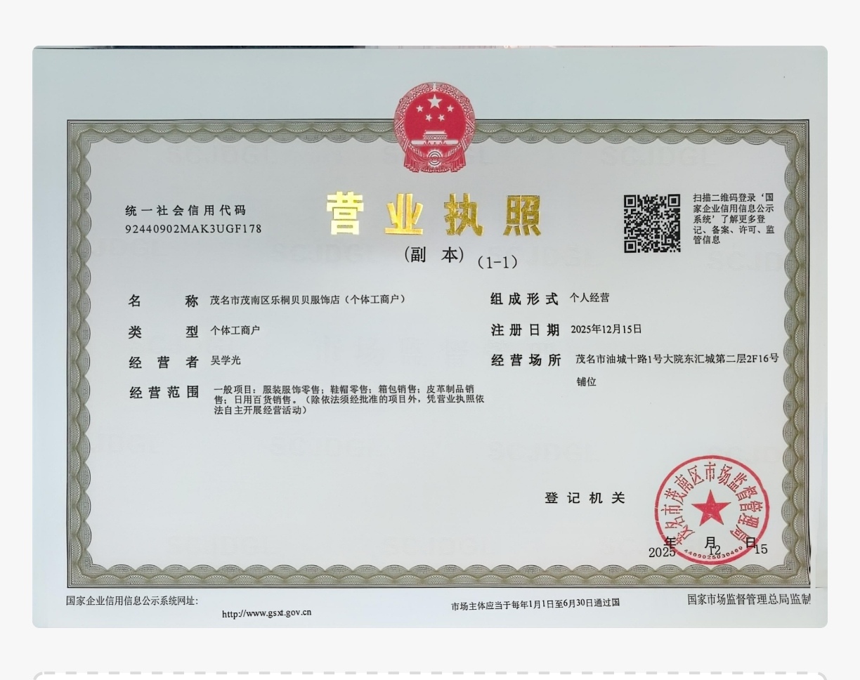 茂名市茂南區(qū)樂桐貝貝服飾店